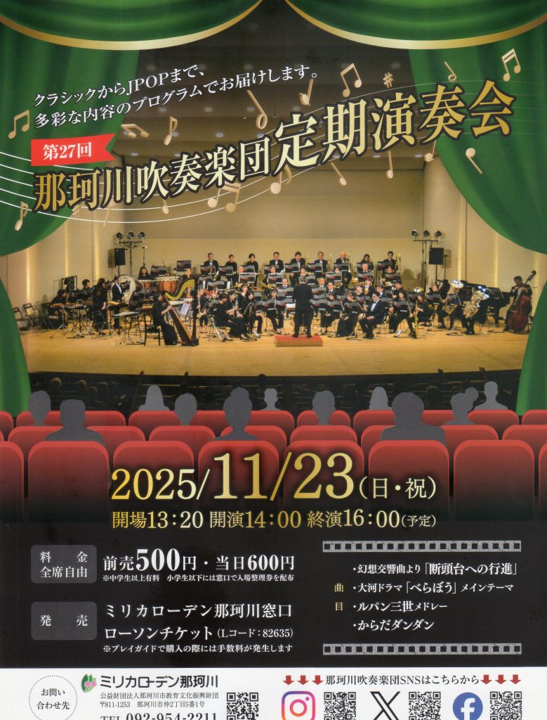 11月23日(日・祝)那珂川吹奏楽団 第27回 定期演奏会