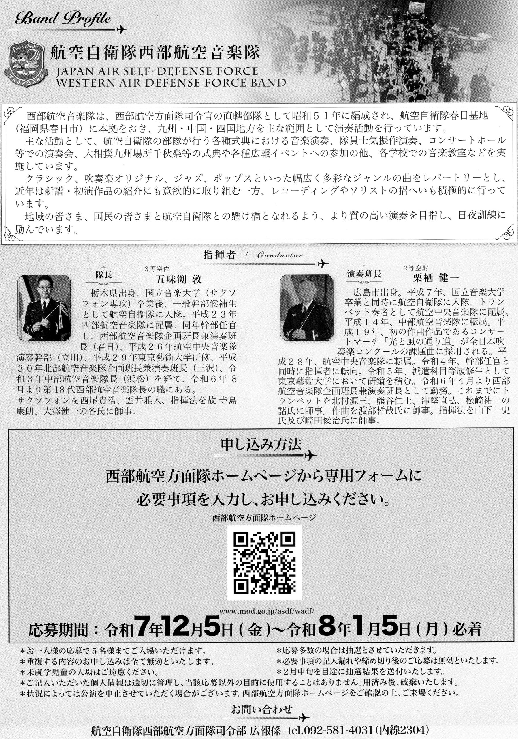 3月7日(土)西部航空音楽隊 第62回 定期演奏会