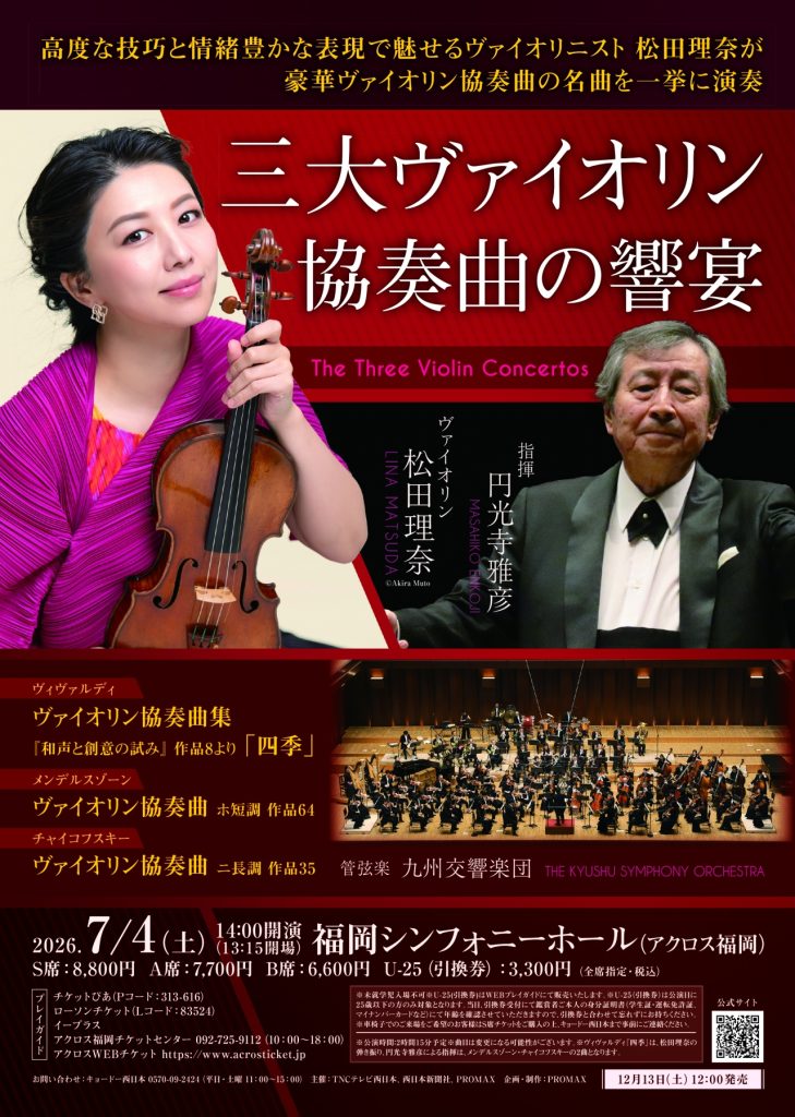 7月4日(土)九州交響楽団 三大ヴァイオリン協奏曲の響宴