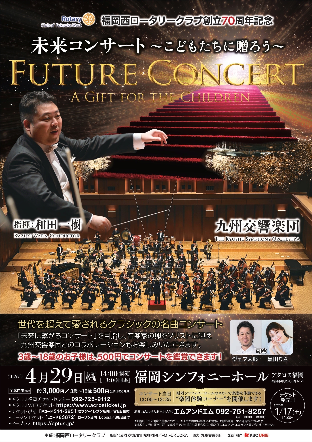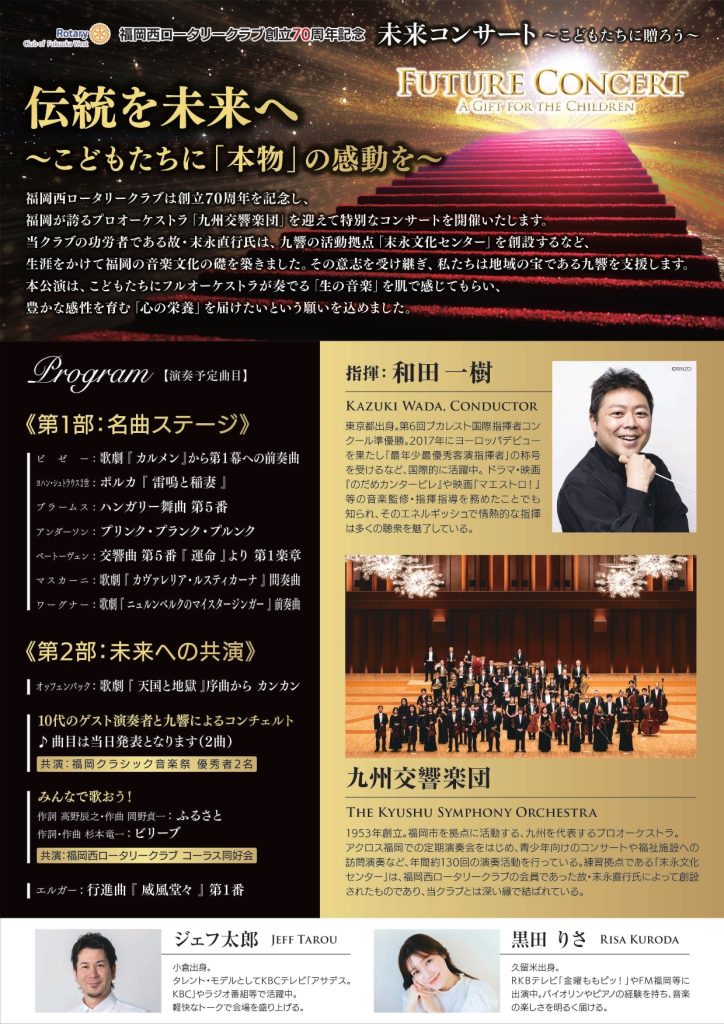 4月29日(水・祝)福岡西ロータリークラブ創立70周年記念 未来コンサート~こどもたちに贈ろう~