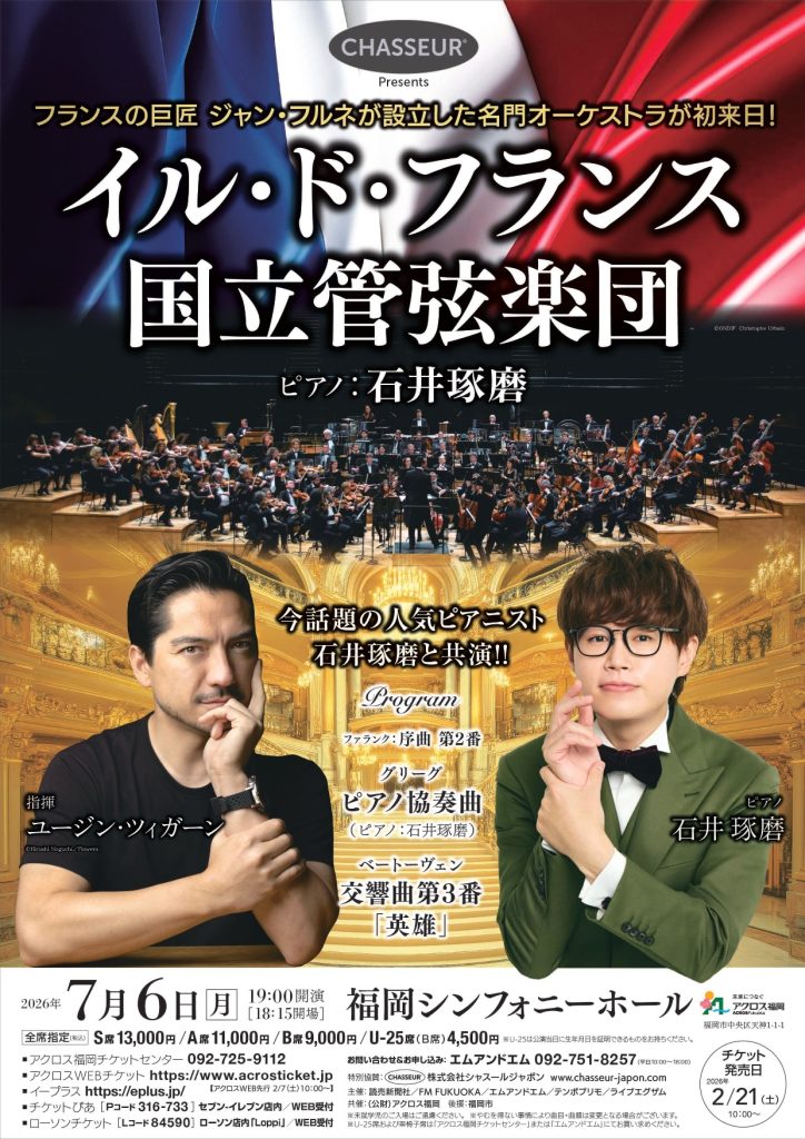 7月6日(月)イル・ド・フランス国立管弦楽団 with 石井琢磨(ピアノ)