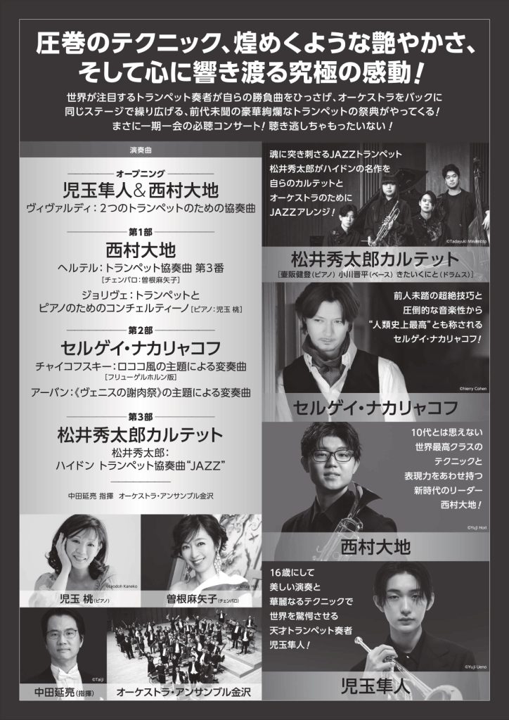 7月30日(木)オーケストラ・アンサンブル金沢 松井秀太郎 ナカリャコフ トランペットの祭典