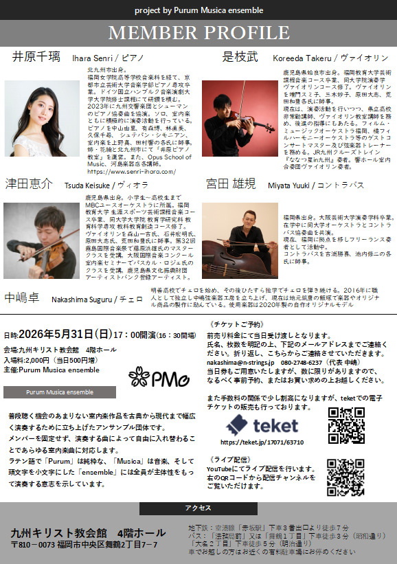 5月31日(日)PMe ピアノ五重奏演会 無料ライブ配信あり