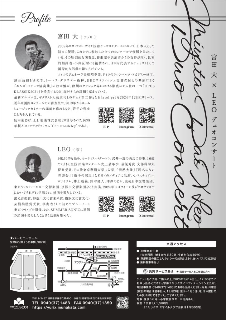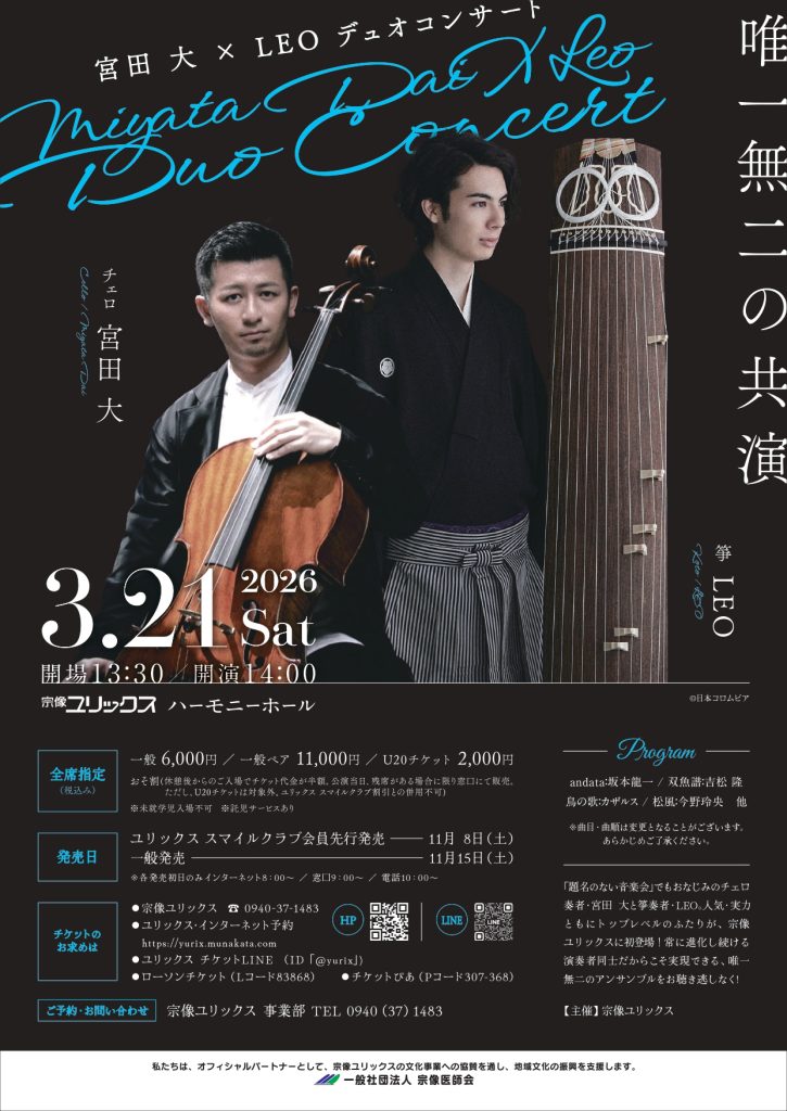 3月21日(土)宮田 大(チェロ)× LEO(箏)デュオコンサート