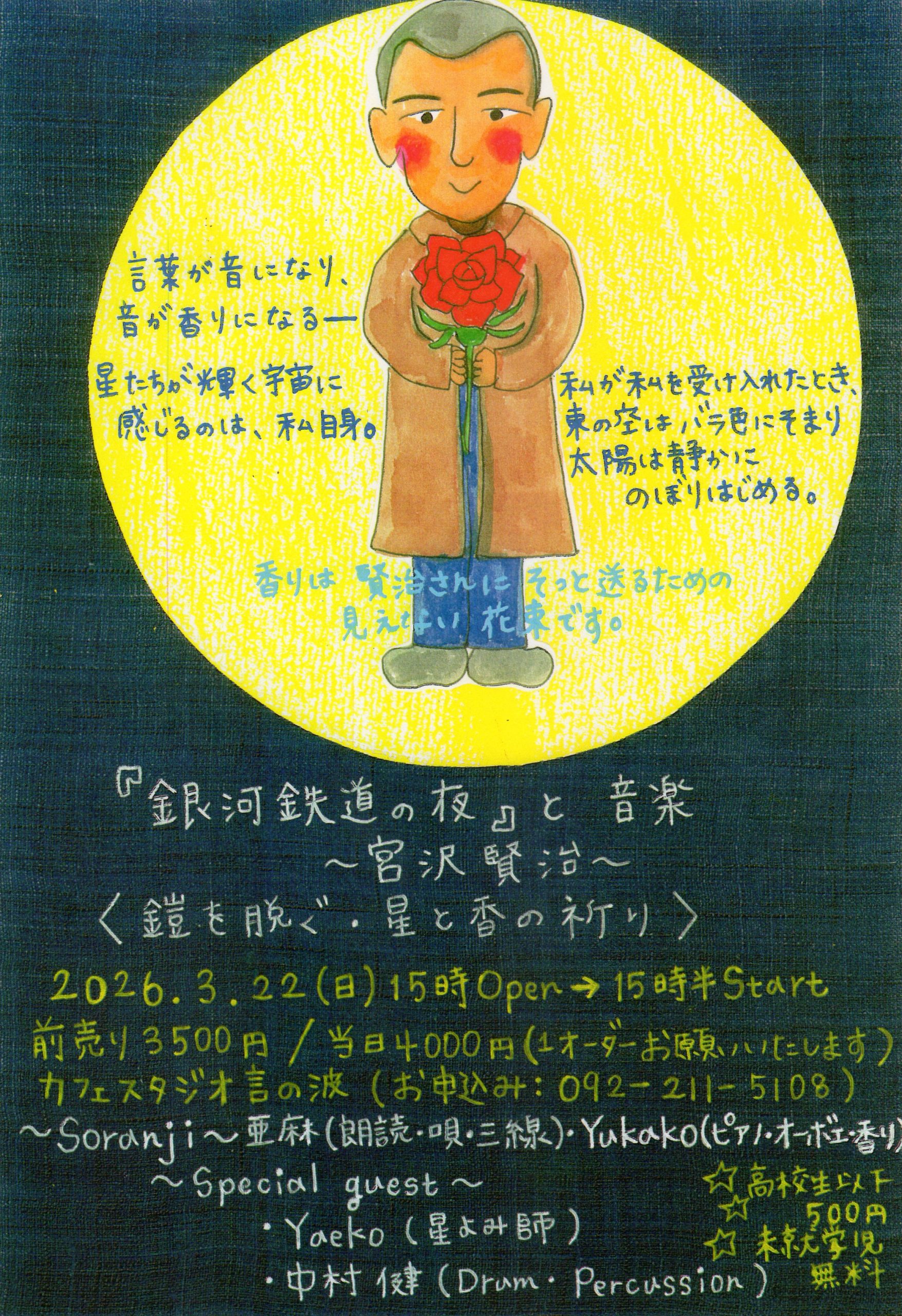 3月22日(日)『銀河鉄道の夜』と音楽~宮沢賢治~<鎧を脱ぐ・星と香の祈り>