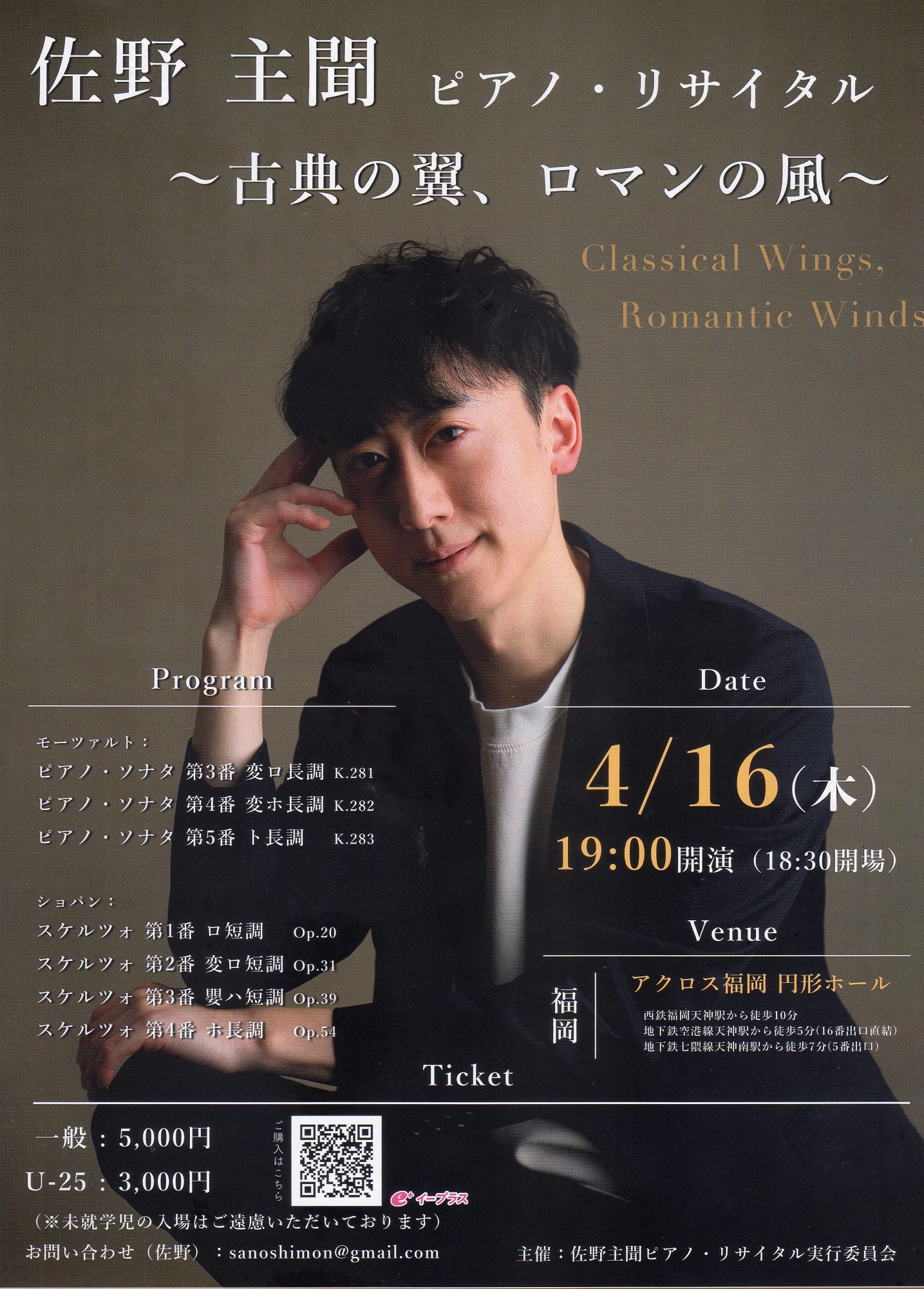 4月16日(木)佐野 主聞 ピアノリサイタル ~古典の翼、ロマンの風~