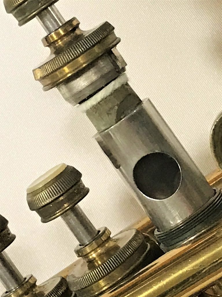 現代のモデルの位置とは逆になっている第3バルブのフィンガーリングの位置が特徴的です。