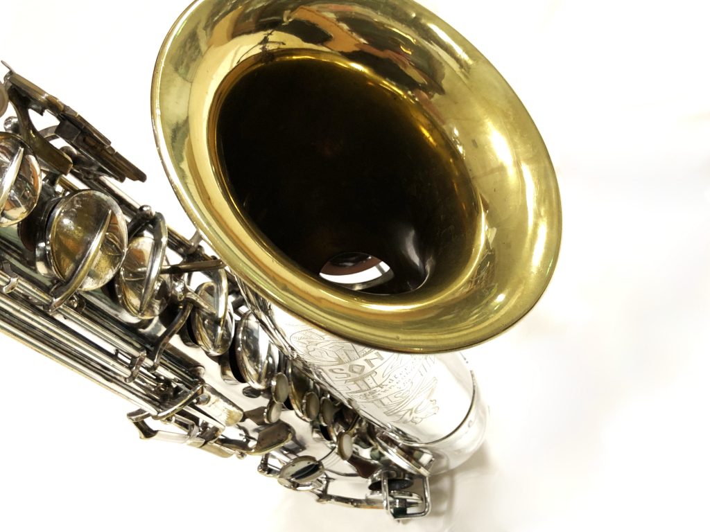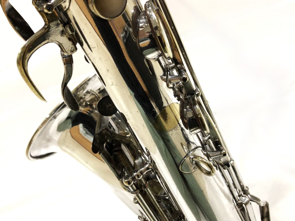 1930年にコーンやキングといったメーカーが右側のベルキィを採用してそれ以降のサックスは右側ベルキィが主流になりましたが、このモデルは左側にベルキィがついています。