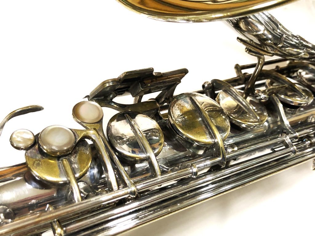 セルマーが最終的なレイアウトを考案してから配置設計がほぼ確定されていますが、このモデルは現在のサックスとは若干違うレイアウトになっています。