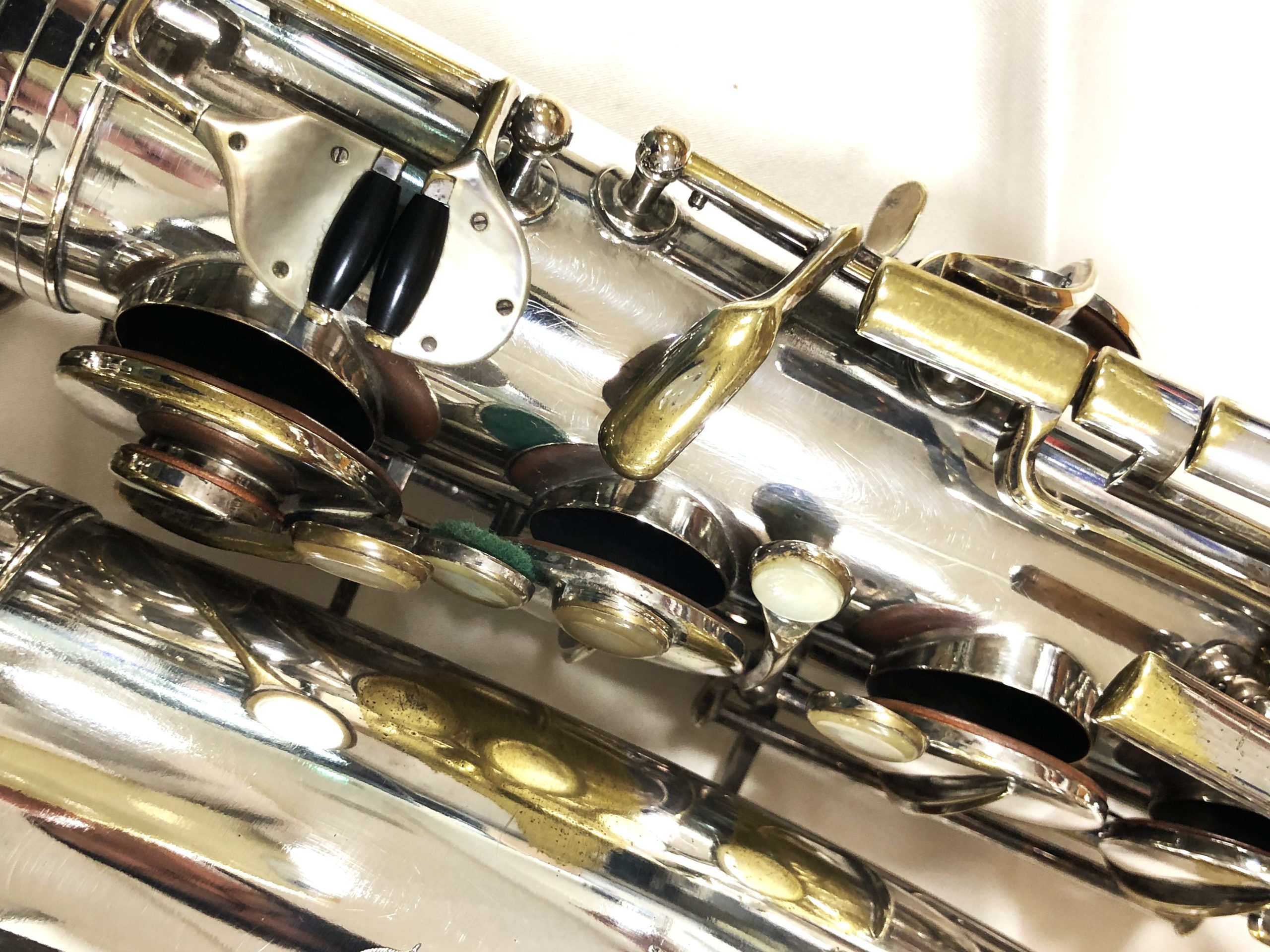 セルマーが最終的なレイアウトを考案してから配置設計がほぼ確定されていますが、このモデルは現在のサックスとは若干違うレイアウトになっています。
